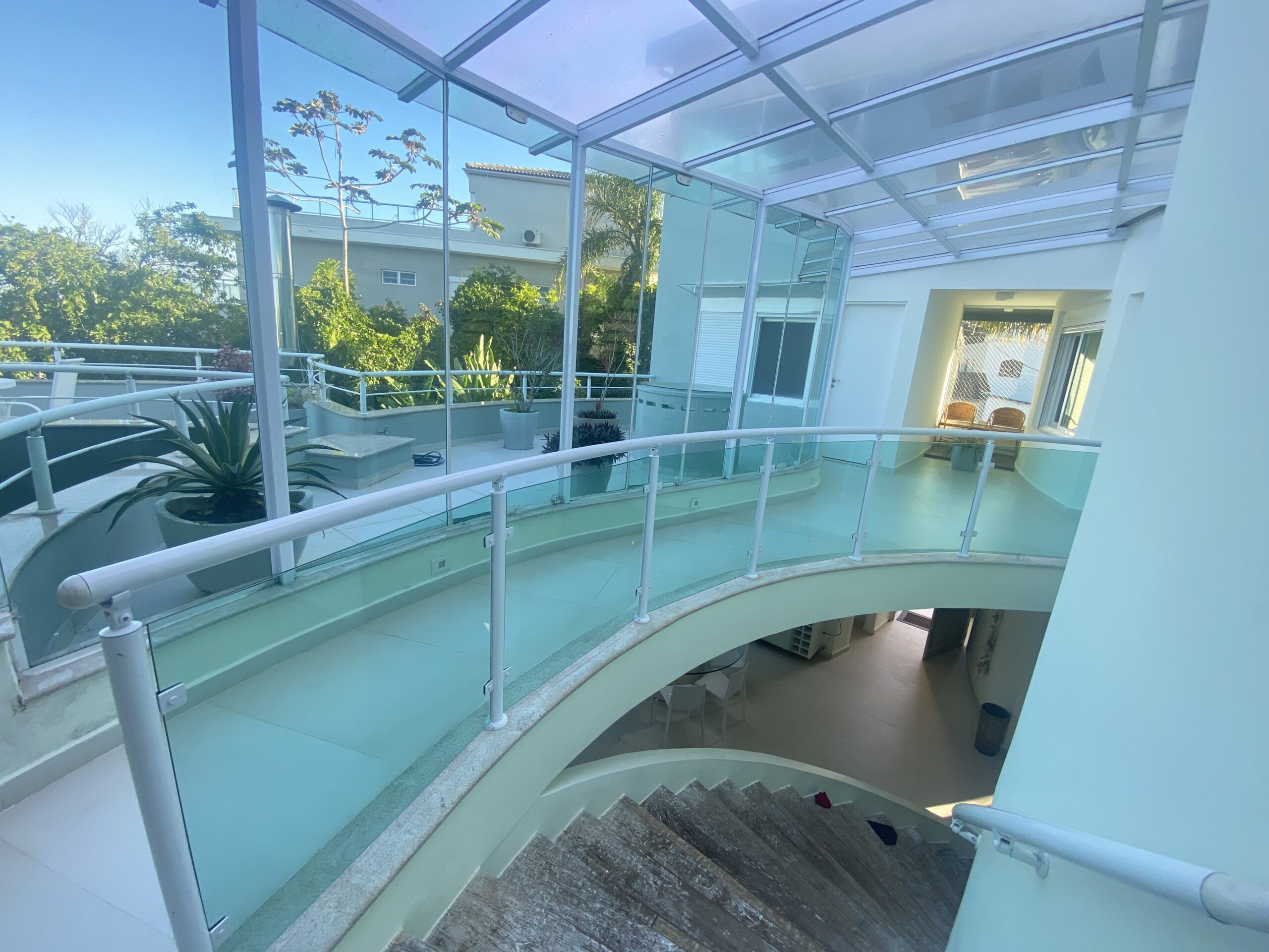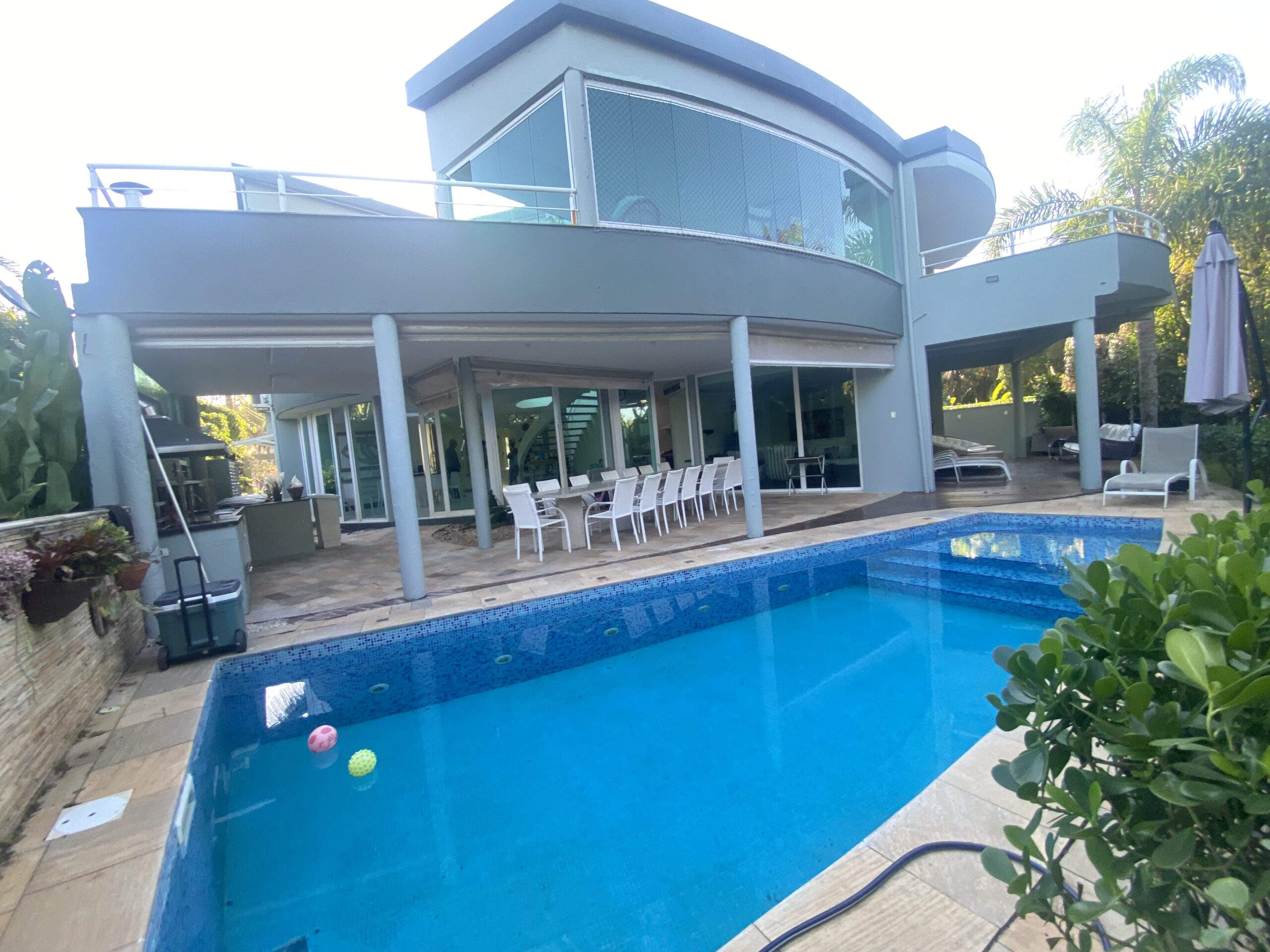 Os ambientes sociais são amplos e acolhedores: sala de TV, sala de jantar, sala de jogos e um terraço com vista fascinante para o mar, perfeitos para momentos de lazer e convivência. A casa também conta com cozinha funcional, área de serviço, lavabo, piscina e garagem, compondo uma estrutura completa para quem busca viver com qualidade e exclusividade.